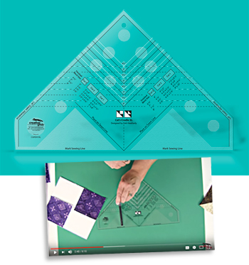 Beskrivelse Double your fun by creating two Cat's Cradle XL units from each set of squares and rectangles. Trim the blocks with the Cat's Cradle XL Tool to create perfect triangle blocks without ever cutting a single triangle! Create 8 different sizes, ranging from 4-1/2" to 8" finished - the cutting requirements for each is printed right on the ruler! The ruler slides easily over the fabric until pressure is applied. Then, our exclusive gripper holds the fabric in place while cutting, eliminating slipping and miss-cuts! The ruler comes with fully illustrated step by step instructions |