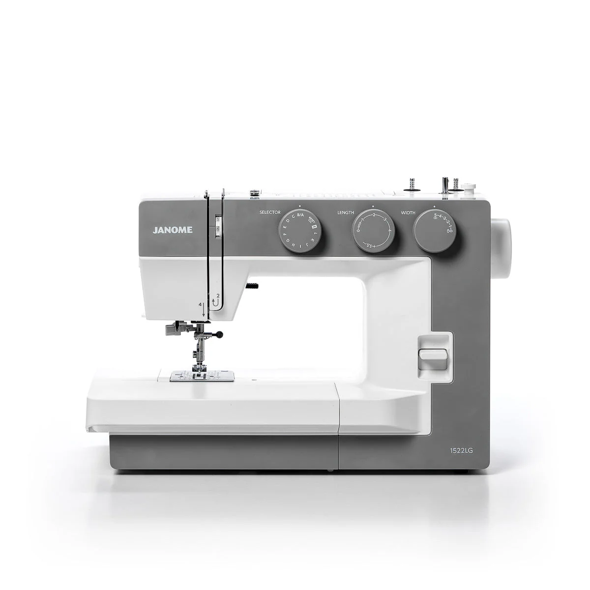 Beskrivelse Janome 1522 lys grå Sy- og hobbymaskin 22 sømmer 1-stegs knappehull Justering av trykkfotstrykk Senkbar transportør Bredt friarmsbord med tilbehørsboks Klassisk spolekapsel CB 5 års full garanti |
