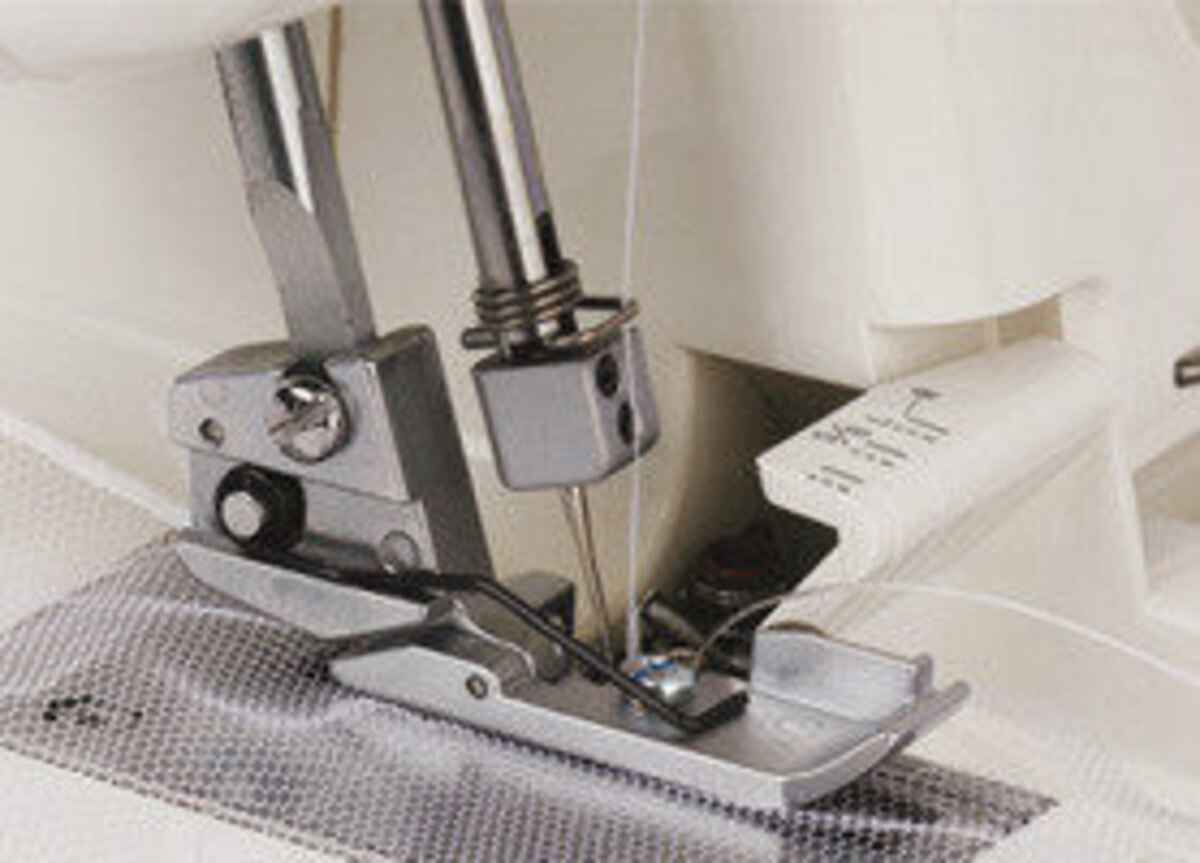 Påsying av tynne snorer eller fiskesener for dekorative falder med rullefald på f.eks. brudeslør.