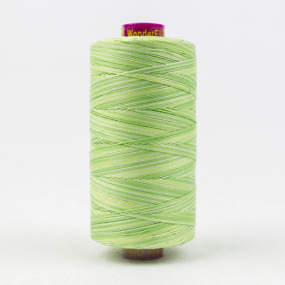 Wonderfil Fruitti™ er en 12 wt, 3-ply (trippelspunnet) flerfarget bomullstråd. Laget av lange bomullsfibre fra egyptisk bomull av høyeste kvalitet. Dobbelbrent for å skape en vakker, myk og god bomullstråd. Fri for voks og belegninger som kan skade symaskinen, er denne lofrie tråden perfekt å vise fram prosjektene dine med. Den gir et fyldig og dramatisk utseende på prosjektene dine. Tilgjengelig i 41 morsomme og lekne, flerfargede kombinasjoner.