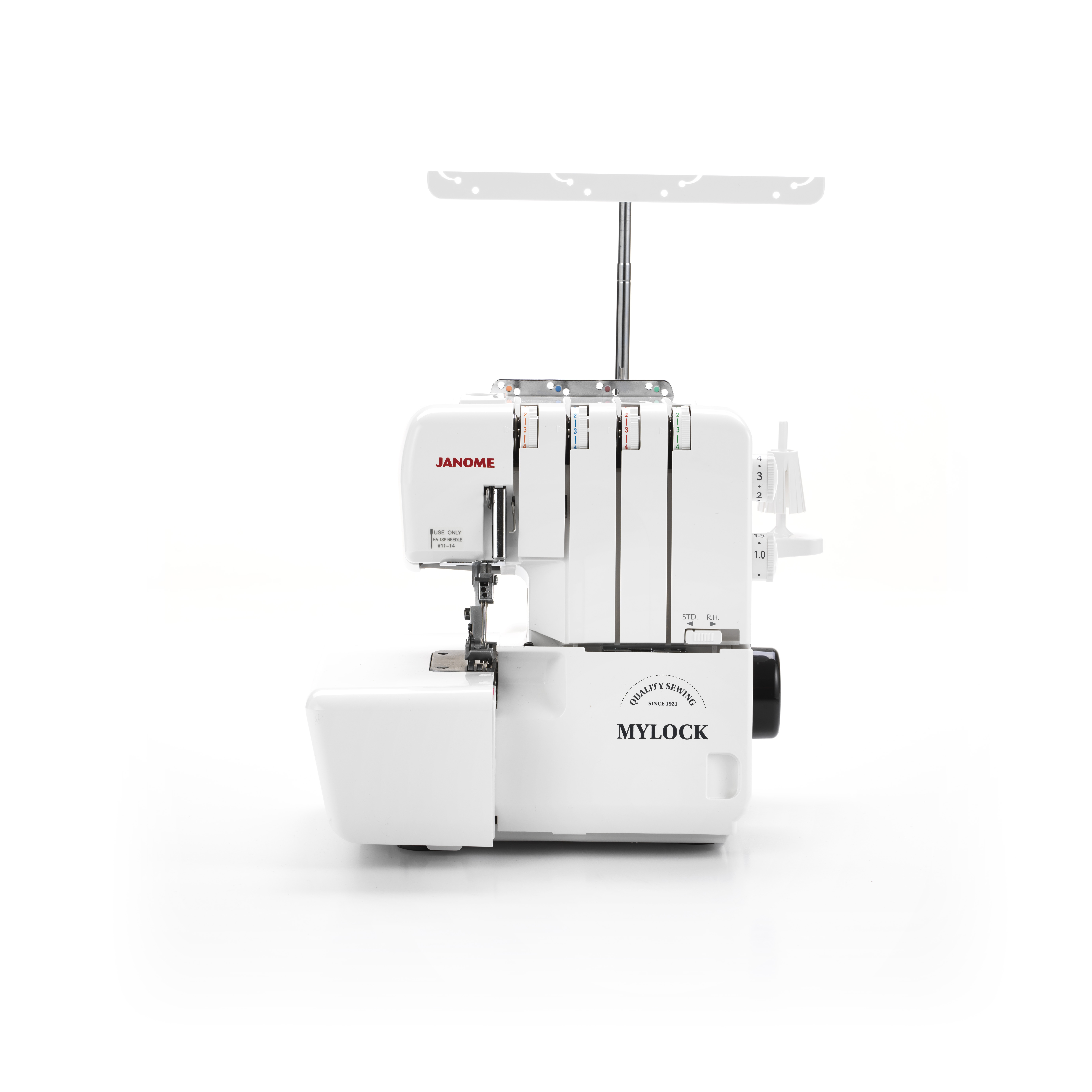 Beskrivelse Overlockmaskin, 4 tråders Flatlock, rullorsøm og rynkesøm Syr 2-, 3- og 4-tråders sømmer Senkbar kniv Differensialtransport fra 0,5 – 2,25 Hurtigtreing av undergriperen Oppsamlerboks for avklipp inngår Nål-i-treder medfølger Instruksjons DVD 5 års full garanti |