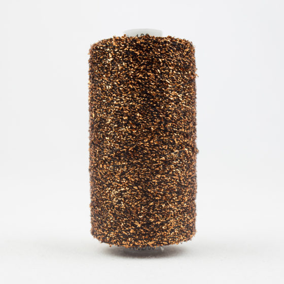 Er en 4-ply rayon tråd som er vevd med tråder av metall, som skaper et veldig teksturert og intensivt glitrende utseende. Sammenliknet med en bomullstråd, er Sizzle stivere med et grovt yttre som gir en “fresende” lyd når du drar med fingrene over den. Dette er den ultimate tråden når du vil legge til mye tekstur, dimensjon eller iøyenfallende sømmer til prosjektet ditt. WonderFil Sizzle kan enkelt byttes ut med WonderFil Razzle og WonderFil Dazzle i de fleste applikasjoner.