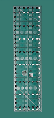 Beskrivelse This 6 1/2" x 24 1/2" rectangle features easy-to-read black and white markings printed in 1" grids marked in 1/8" and 1/4" increments. Use the easy-to-read, numerical black numbers (printed on white dots) and the 1/4" grip sides to cut whole inches. These 1/4" grip sides accentuate the dashed lines printed 1/4" away from two adjoining edges to aid in trimming seam allowances. Use the patented Turn-A-Round feature – designated by the easy to read, numerical white numbers (printed on black dots) and the 1/2" grip sides – to add the 1/2" seam allowance. Our exclusive gripper holds the fabric while cutting when pressure is applied. The ruler includes 30°; 45°; and 60° angles. White horizontal and vertical lines are printed on the rectangle so the center of the ruler is easily distinguishable. |