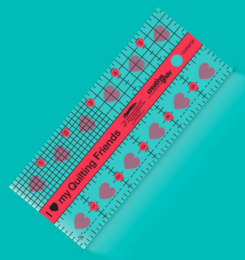 Beskrivelse This 2-1/2 x 6 inch rectangle ruler features easy-to-read black and pink markings and is actually three rulers in one. A 1/2 inch pink strip down the center of the ruler separates the ruler into two 1 inch x 6 inch sections. One side is printed in 1 inch grids marked in 1/8 inch and 1/4 inch increments with a 1/4 inch dashed line along the length of the ruler. The other side features a 1 inch x 3 inch segment printed with solid 1/8 inch solid grids and a 1 inch x 3 inch segment printed with 1/4 inch solid grids. |