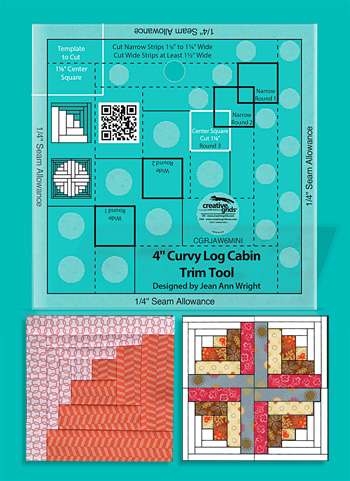 Beskrivelse Create the illusion of curves with this 4" version of our popular Curvy Log Cabin Trim Tool. Sew four blocks together to, piece a circle which finishes to 8". Combine these blocks with other 4" blocks for unlimited design possibilities. The tool features easy-to-read black and white markings and the popular Creative Grids® grip. The ruler slides easily over the fabric until pressure is applied; then, our exclusive gripper holds the fabric in place while cutting, eliminating slipping and miss-cuts! |