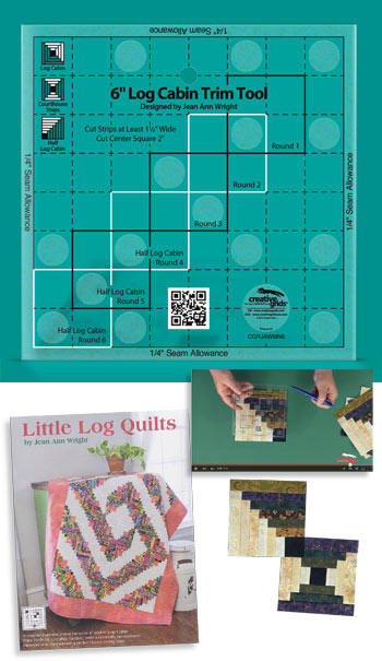 Beskrivelse The 6 inch Log Cabin Trim Tool Template features exclusive markings to create perfect finished Log Cabin; Half Log Cabin; or Courthouse Steps blocks. After adding each round of logs, place the appropriate centering square on the ruler over the 2 inch finished center square and trim. Since each round is squared up before the next set of logs are added, the results are spectacular. The suggested strip widths are printed right on the template! |