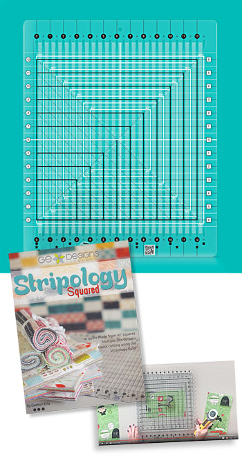 Beskrivelse The Stripology XL combines all of the features you love in the original Stripology ruler AND the Stripology Squared. This beauty combines the height of the Stripology Squared - so you can square up blocks up to 12½'' - with the width of the original Stripology so you can cut up to eight 2½'' strips or 14 1½'' strips without ever moving the tool, reducing your rotary cutting time by up to 75 percent. The 2½ inch increments are marked with squares; the 1½ inch increments are marked with stars - no math required! Need to cut in ¼" increments No problem, just follow the chart included in the instructions and use the ¼" line on the ruler. We have added additional bells and whistles as well. There are 60 degree lines as well as 45 degree lines; ½'' lines; and additional markings to aid in cutting perfect triangles every time. This ruler comes with fully illustrated step by step instructions or watch Gudrun's video tutorial. |