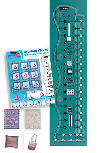 Beskrivelse One side of the ruler features a gentle 3/4'' wave with a 6" repeat between the ''waves''. This wave is extended around the end of the ruler so the waves can be matched on the corners of a project. This curve adds a dramatic finish to any project but does not require a bias binding. The straight side of the ruler features easy-to-read black markings printed in 1" grids marked in 1/8" and 1/4" increments. Our exclusive embedded gripper dots hold the fabric while cutting when pressure is applied. |