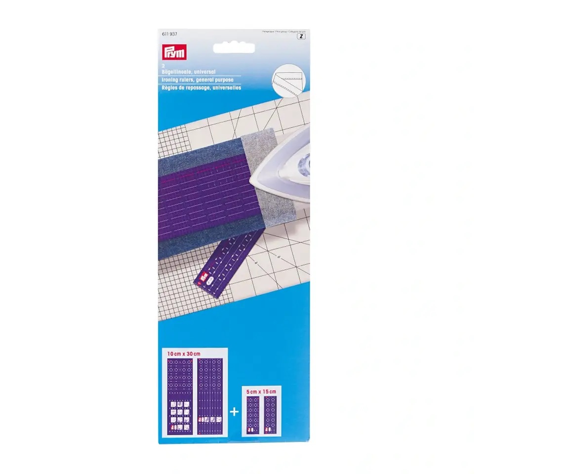 Beskrivelse Heat-resistant ironing ruler for all types of seams 2 different sizes: 10 cm x 30 cm and 5 cm x 15 cm Can be used a number of times Easy ironing of edges and seams |