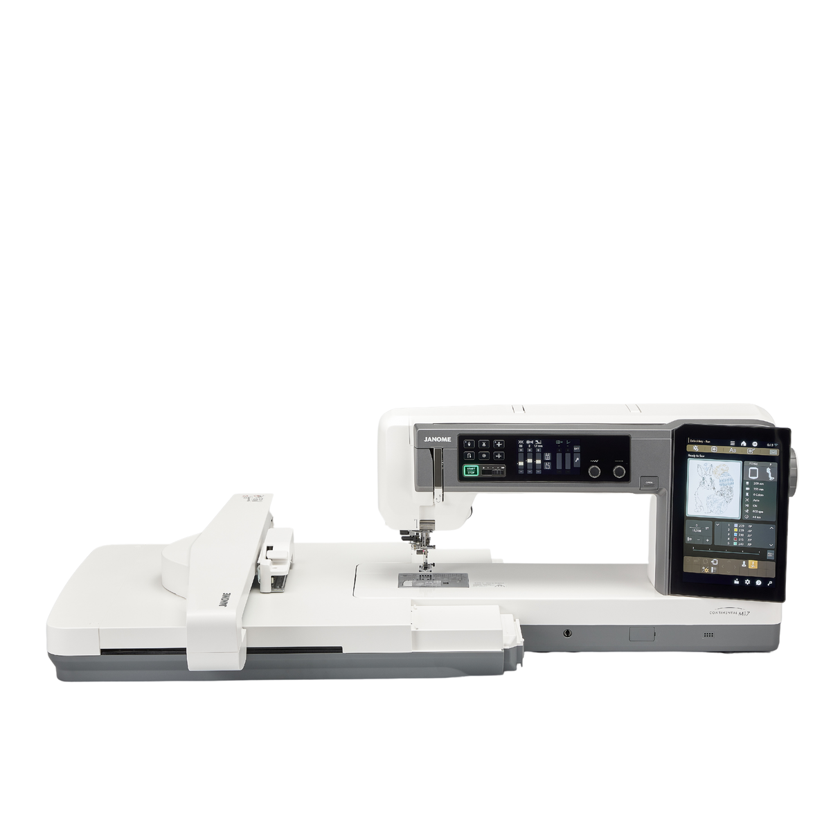 Beskrivelse CONTINENTAL M17 Sy- og broderimaskin Største broderiområde 280 x 460 mm Største arbeidsområde Syhastighet 1300 sting/min Broderihastighet 1200 sting/min To berøringsskjermer Gjennomtenkt utvendig design Flat-bed kombinasjonsmaskin |