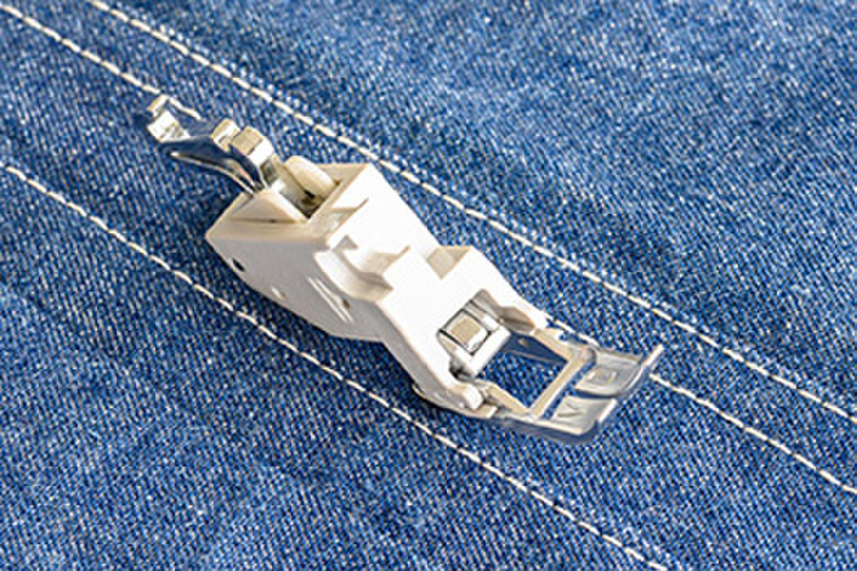 Beskrivelse Den smale trykkfotholderen har synkronisert kraft til transport av stoffet og er spesielt effektiv til søm på kanten av stoffet, og søm nære og på smale strimler. Inkl. den smale trykkfotholderen. |