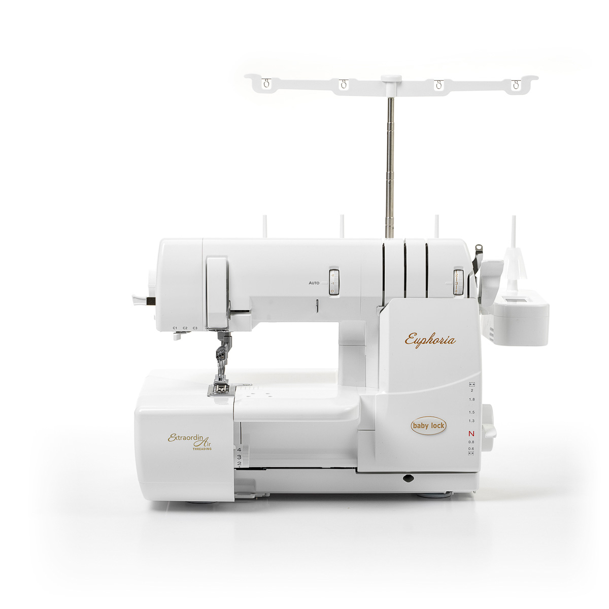 Beskrivelse Stort innvendig arbeidsområde RevolutionAir – lufttredning av kjedegriperen og Chain-Off Automatisk trådleveringssystem Nålitrederen for alle tre nåler Ekstra utrymme under trykkfoten Trykkfotsløftet sitter ergonomisk plassert på høyre side av maskinen Kneløft 3 nåler Justerbar differensialtransportering (fra 0,6 til 2,0) LED belysning og sikkerhetssensorer Baby Lock Euphoria er en avansert mekanisk covermaskin med en syhastighet på opp til 1500 sting i minuttet EGENSKAPER: Stort innvendig arbeidsområde med nesten 13 cm til høyre om nålene Nærmest trer seg selv med RevolutionAir – lufttredning av kjedegriperen og Chain-Off (trådkjetting etter avsluttet søm) Automatisk trådleveringssystem for nåltrådene som beregner og leverer nøyaktig trådmengde til hvert sting Perfekte sting i alle stoffer uansett tykkelse Nålitrederen for alle tre nåler Ekstra utrymme under trykkfoten ved trykkfotsløft da transportørtennene senkes ned i maskinen, noe som er snillt mot stoffer Trykkfotsløftet sitter ergonomisk plassert på høyre side av maskinen Baby Lock Euphoria leveres dessuten med kneløft, har 3 nåler med flere ulike søm muligheter og justerbar differensialtransportering (fra 0,6 til 2,0). Vertikalt nålnedslag for ekstra styrke, kontroll og stingkvalitet. LED belysning og sikkerhetssensorer (trykkfot, side- og frontpanel) for ekstra god sykomfort og sikkerhet. De instruksjoner du trenger følger med maskinen og sikrer profesjonellt resultat fra start. TRYKFØTTER Coversømsfot montert på maskinen TILBEHØR Rengjøringsbørste med hålholder Nåleske Skrutrekker Stor Umbrakonøkkel 4 trådlokk (store) 4 trådnett 4 trådholderkoner 4 skumgummi underlag 1 trådholder (stor) Pinsett 1 quilt guideskrue Gripertreder Kneløfter 2 skruer (hvite hatter, for å feste ekstra tilbehør) Fotpedal med strømkabel Plastovertrekk Instruksjonsbok |
