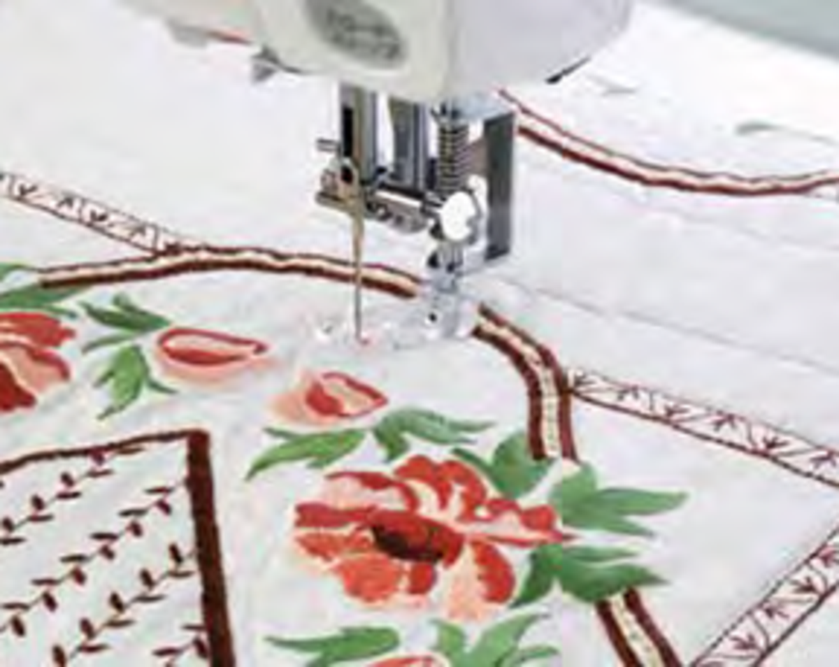Frihåndsstopping, quilt eller broder etter egne eller ferdige mønster. Brukes med fordel sammen med rettsømstingplaten.