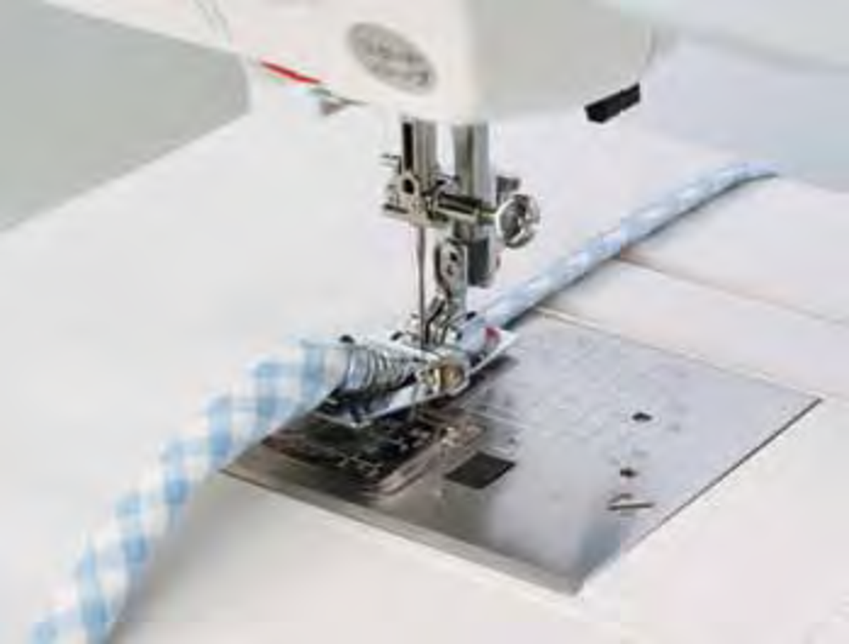 Kantbåndsfoten brukes til å guide og sy fast kantbånd som er 10-14 mm brede, i én og samme operasjon.