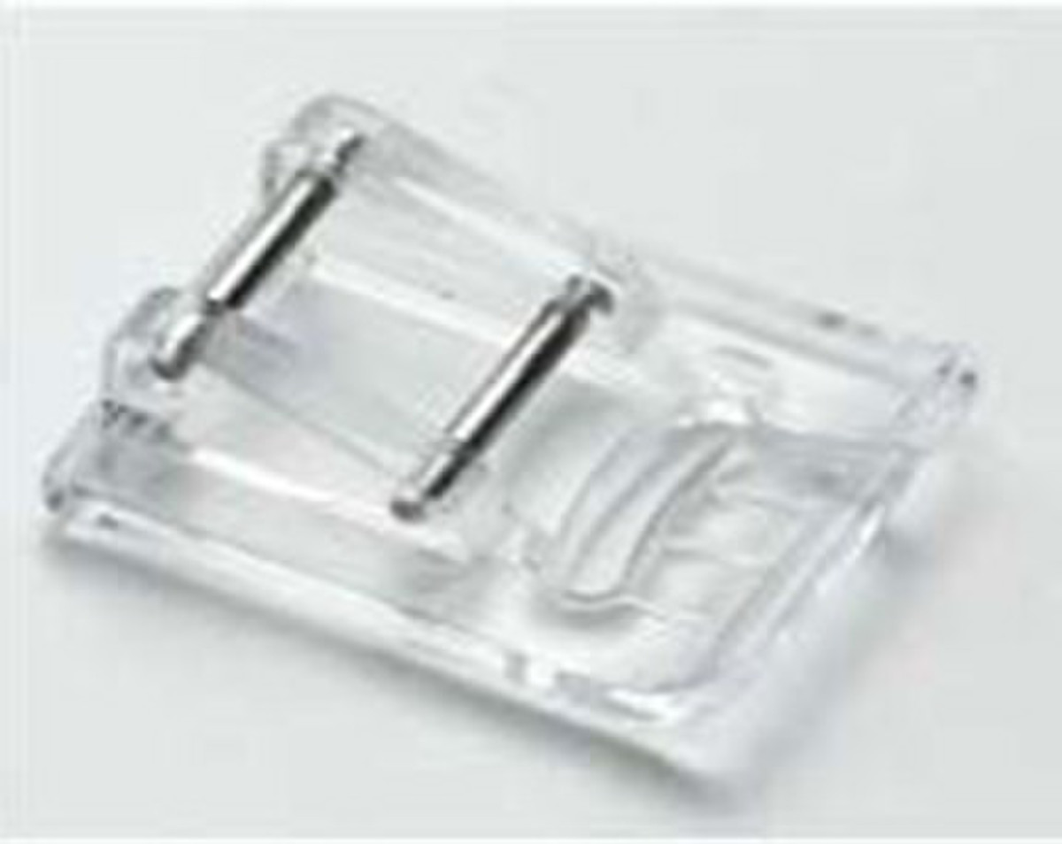 Gjennomsiktig, kort trykkfot med dobbelt feste. Enkel å manøvrere ved applikasjon på kurvede områder.