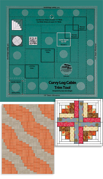Beskrivelse CGRJAW5 Create the illusion of curves with this Curvy Log Cabin Trim Tool. Sew four blocks together to ''piece'' a circle. Sewing narrow strips to two adjoining sides of the center square and wide strips to the remaining two sides create the curve. Mark the wrong side of the center square through the holes on the ruler to ensure a perfect seam allowance. Then sew a round - two narrow and two wide and trim. Add two more rounds to complete a perfect 8" finished block. The cutting requirements for the center square and the narrow and wide strips are printed right on the ruler. Combine these blocks with the original Log Cabin Trim Tool (CGRJAW1) which makes traditional log cabins, courthouse steps, and half log cabins. The design possibilities just got a lot more interesting - It doesn't get any easier than this! |
