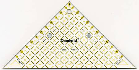 Beskrivelse The Omnigrid 6in half square triangle ruler is used to create half-square triangles for finished quilt blocks up to 6in; it has seam allowance calculations included in the measurements; it is easy to manipulate for smaller triangles when quilting. Used to cut half-square and quarter-square triangles; seam allowances are included in the measurements, which are based on the finished size of the quilt block. |