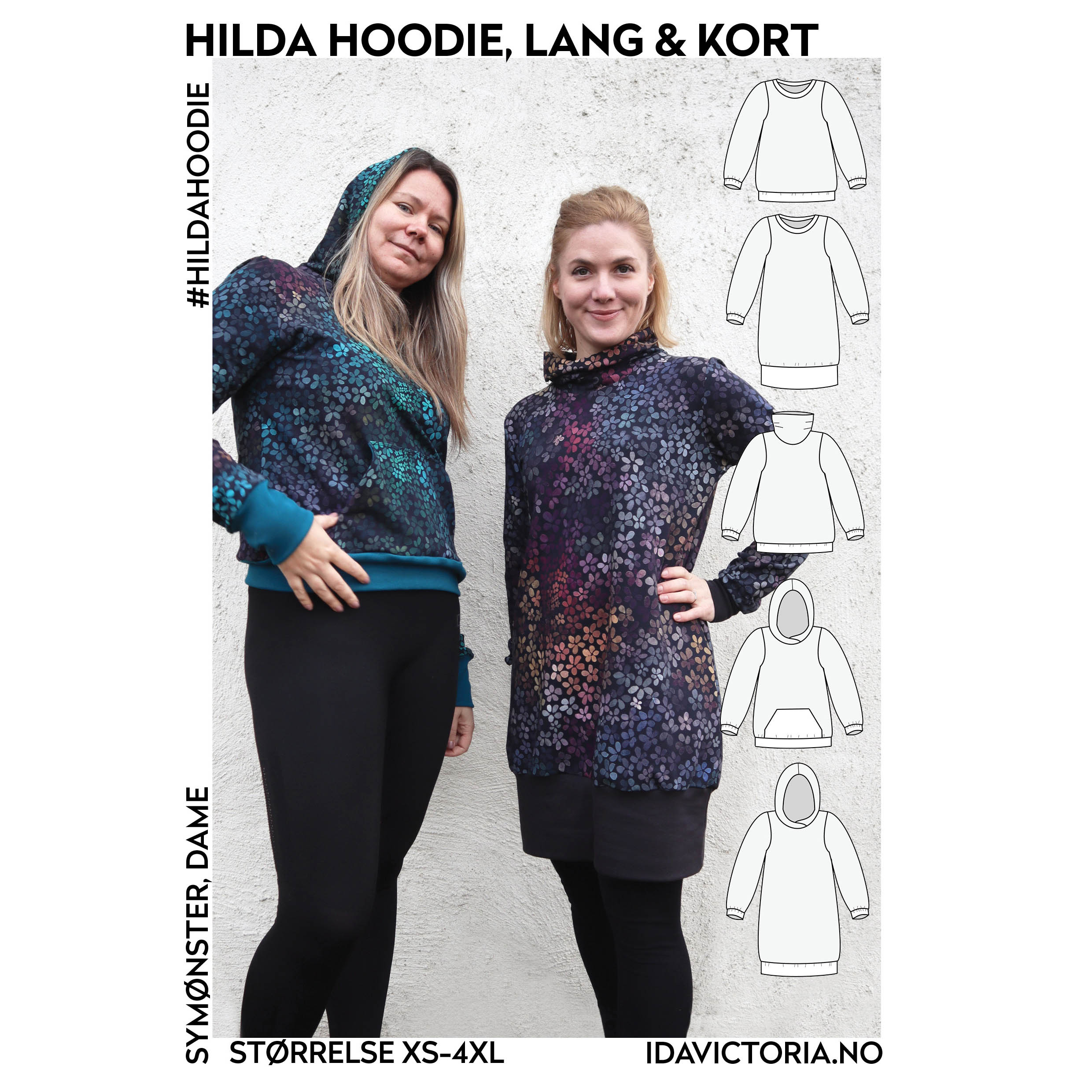 Beskrivelse HILDA HOODIE er en tøff genser med romslig passform, og flere variasjonsmuligheter. Du kan sy genseren lang eller kort, med eller uten lomme, med hette, høy hals, eller bare med en ribbekant i halsen. Gensermodellen er lik som “Kiddie Hoodie” – et annet mønster fra Ida Victoria, som finnes i barnestørrelse 92-170. Denne genseren kan sys i vanlig bomullsjersey, ribbestrikk, isoli, punto eller andre strikkede stoffer. Det må være god stretch i ribbekantene du bruker, men hovedstoffet trenger ikke å ha mye stretch. Stofforbruk: XS – L / XL-3XL / 4XL Kort modell: 120 cm / 125 cm / 130 cm Lang modell: 145 cm / 150 cm / 170 cm* + hette: 45 cm I tillegg til oppgitt stofforbruk kommer ribbekanter. Stofforbruket er målt med utgangspunkt i 150 cm bredt stoff, og er rundet opp. *Det store hoppet i stofforbruk forklares ved at på den lengste modellen i 4XL, kan ikke overdelene klippes ved siden av hverandre på 150 cm bredt stoff, men må klippes ut over hverandre på stoffet. Ermene klippes ut over hverandre, ved siden av overdelene. |