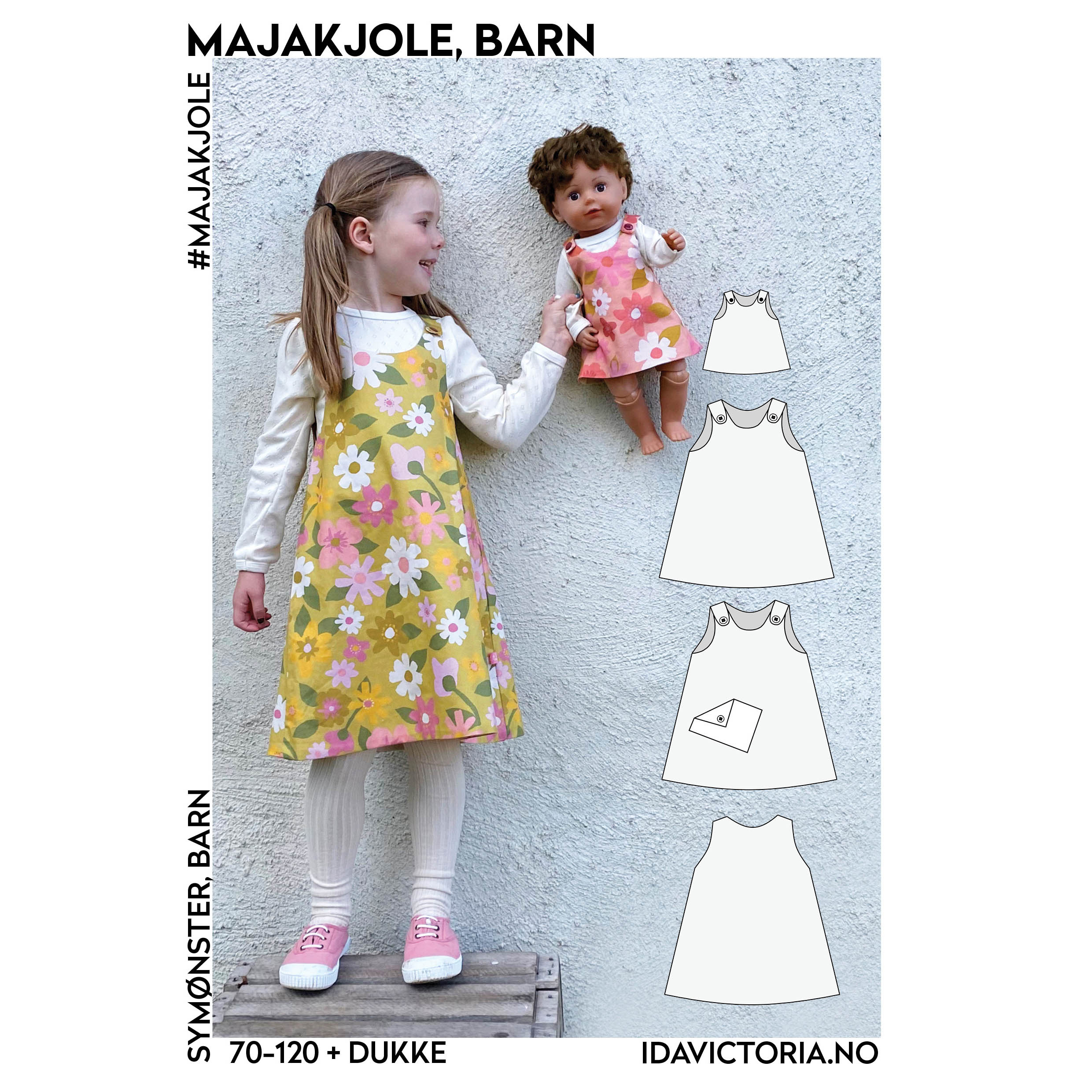 Beskrivelse Majakjolen er praktisk og enkel, og fungerer godt gjennom hele året, med eller uten trøye under. Kjolen er helfóret, og lukkes med knepping over skulderen. Kjolen sys i vevde bomullsstoffer, og du trenger kun en helt enkel symaskin og vanlig rettsøm for å sy den selv. |