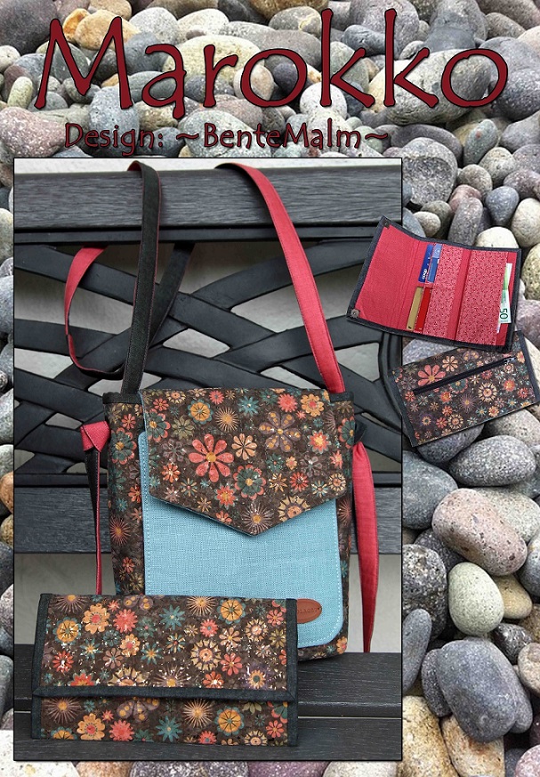Beskrivelse Liten skulderveske og enkel lommebok i korkstoff. Str, veske: 7” x 9” x 3” (18 cm x 23 cm x 8 cm) (b x h x d) Str, lommebok: 8” x 4 ½” (20 cm x 12 cm) (når den er lukket) Veske: Vesken har en stor frontlomme. Denne er laget av lin, som danner fin kontrast til korkstoffet. Lukking: En stor klaff lukker veske og frontlomme i ett. Innside: 1 stk glidelåslomme. Hank: er festet til vesken gjennom maljer, som er slått inn i veskens sidesøm. Lommebok: er laget av korkstoff på yttersiden. Den er stivet opp med flere lag med Decor Bond. Glidelåslomme til småpenger på yttersiden, og lommer til sedler og kort på innsiden. Lommeboken er lukket med 2 magnetknapper. |