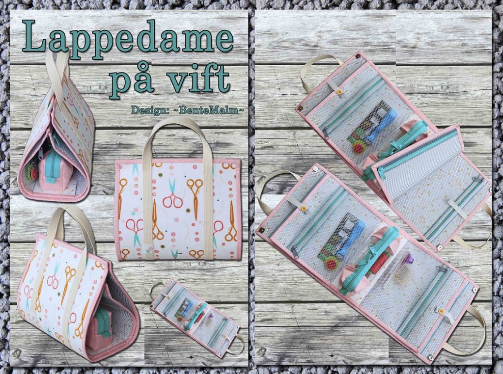 Beskrivelse Når mappen er lukket, får den form som en elegant dameveske. Å være på vift betyr å være ute og more seg, og hva er vel mer morsomt for oss lappedamer enn å være ute på noe sammen med likesinnete, der vi trenger å ha med oss sysakene våre. Str åpen: 10” x 22 1/2” (25 x 57 cm). Str lukket: (25 x 20 x 10 cm) b x h x d. Mappen har 6 stk glidelåslommer i mesh. Pungen er festet med borrelås, slik at den kan løsnes og brukes alene. Mappens ytterdel er stivet opp med Fast to Fuse, slik at den holder fasongen godt. Glidelås og meshbånd (folde-elastikk): bruk gjerne 2 forskjellige farger, og bruk dem blandet (f eks: grå meshbånd til grønn glidelås og omvendt). Bytt gjerne om på fargen på gliderne også hvis du bruker glidelås i metervis. |