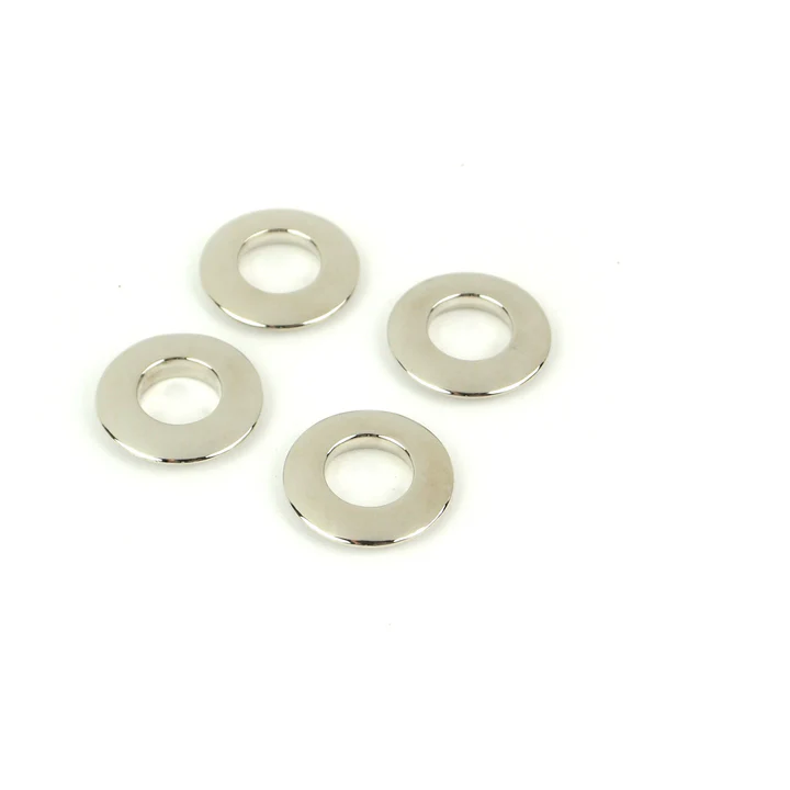 Beskrivelse Size: 12mm inner diameter and 23mm outer diameter CLEARANCE DEFECTIVE 16 DOUBLE FACED SNAP TOGETHER GROMMETS 12MM Easily install these grommets without any special tools! Simply snap each side of the grommet together with your hands. If you prefer, you can install them using a mallet or anvil and setter. These double faced grommets look stunning from both sides. Use grommets for attaching straps or drawstring on handbags and bucket bags. These grommets best accommodate straps or drawstring that is 3/8" or 1/2" wide. For best results, I'd recommend installing them on a bag that measures 1/8 - 3/8" thick. |
