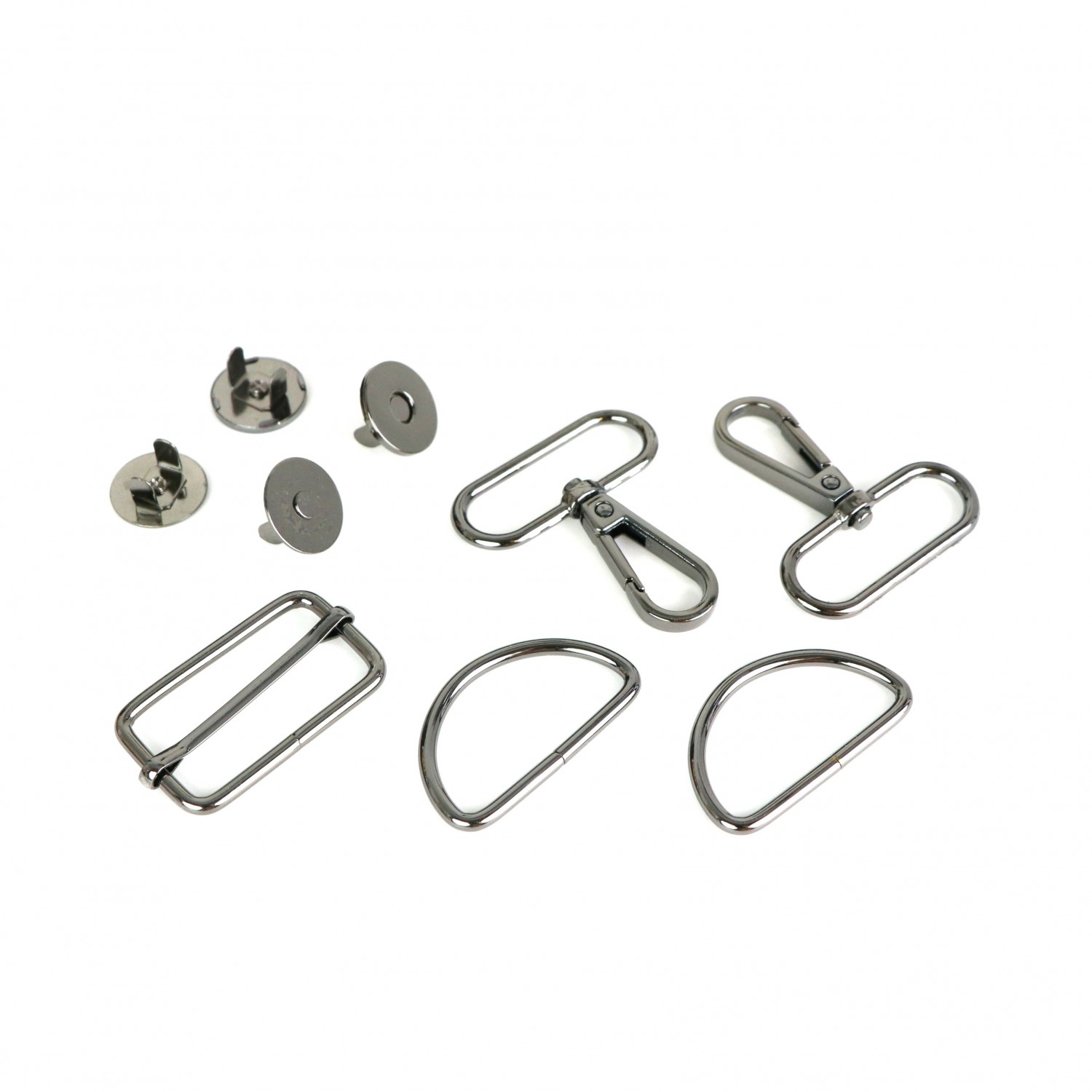 Beskrivelse We've made it easy for you by putting together a professional-looking Hardware Kit for the Hudson Bag! Now, all of the necessary pieces of hardware to make one Hudson Hobby Bag are included in a kit. Kits are available in nickel, light gold, antique brass, gunmetal, and rose gold finish. Included in Hardware Kit: - Two 1.5in Swivel Hooks - Two 1.5in D-Rings - One 1.5in Slider Buckle - Two 3/4in Magnetic Snap. Color: Gray Made of: Metal Use: Hudson Hardware Kit |