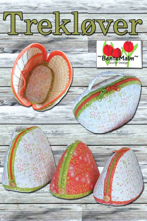 Beskrivelse Store punger, eller toalettmapper som kan passe til en helgetur. Str, Mappe 1: Ca 9” x 7” x 4” (23 x 18 x 10 cm) (b x h xd) (se nr på mønsterfoto). Str, Mappe 2: Ca 9” x 6” x 4” (23 x 15,5 x 10 cm) Str, mappe 3: Ca 9” x 8” x 4” (23 x 20 x 10 cm) Ca-mål: vanskelig å måle nøyaktig pga den runde fasongen. Hver del er quiltet med maskin / rettsømsfot, for deretter å syes sammen for hånd. Dette gir en stødig mappe med stor åpning, og godt overblikk over innholdet. Glidelåsen kan syes på med maskinsøm, men det er lettest å få pent resultat hvis den syes for hånd. Maler til bunn og vegger gir 3 forskjellige sidevegger, og 2 forskjellige bunner. Disse kan kombineres slik du ønsker. Alle de 3 sideveggene passer til begge de 2 bunnene. |