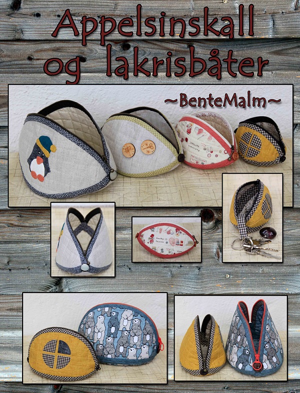 Beskrivelse Punger i 2 forskjellige fasonger, og til sammen 6 størrelser. Pung A: finnes i 4 forskjellige størrelser, fra 10” x 5” til 5 ½” x 2 ¾” Den minste pungen passer også fint som nøkkelhank. Hver del har fasong som en appelsinskall-båt. Pung B:. finnes i 2 størrelser, ca 8 ¼” x 5 ½” og ca 6 ¾” x 4 ¼” Teknikker: Quilting med maskin, sammensying og glidelås-sømfor hånd. |