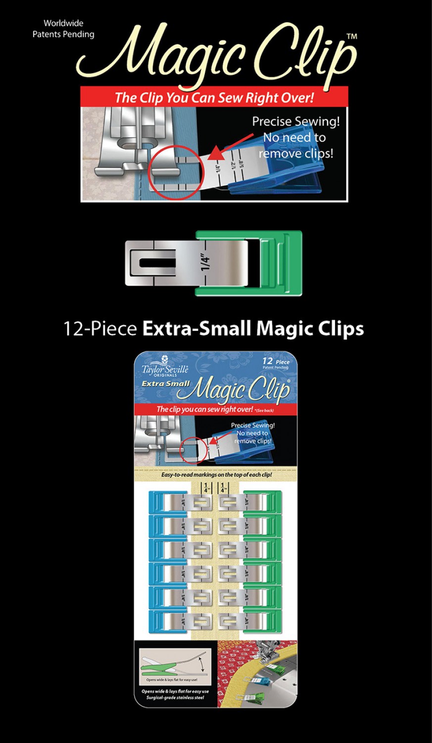 Beskrivelse Magic Clip The clip you can sew right over! Precise sewing, no need to remove clips. Precise markings in 1/4in increments. Opens wide and lays flat for easy use. Clip fits under sewing foot. Surgical grade stainless steel. World wide Patents Pending. 1.5in (L) x 0.5in (W) x 0.5in (H) Color: Assorted Made of: Plastic and Metal Use: Clip Size: 1.5in (L) x 0.5in (W) x 0.5in (H) Included: 12 clips per pack |