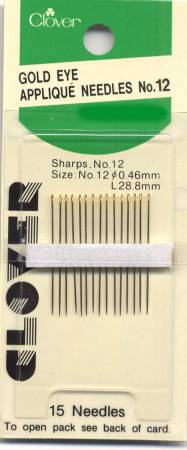 Beskrivelse #12 Clover Between/Quilting Gold Eye. Quilting Needles are very sharp, are shorter than a regular sewing needle, and are made specifically for hand quilting. The smaller the needle length, the smaller the stitch. Good needles often have gold eyes, this keeps the needle from tarnishing as a result of the reaction of the metal to the acid in your skin. Made of: Metal Use: Hand Needles Size: 12 Included: 15 needles |